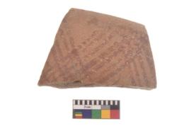 | Description / विवरण | Specimen of red on red ware with black decorative Lattice design geometric painting. |