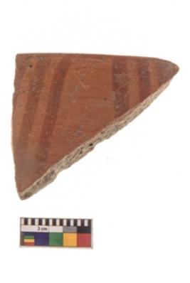 | Description / विवरण | Specimen of black on red ware with black decorative Vertical lines geometric painting. |