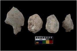 | Description / विवरण | There are n 4 flakes tool; there are multidirectional irregular scar pattern on them; made of short flakes and all four have tapering edges. |
