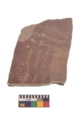 | Description / विवरण | Specimen of red on red ware with black decorative Intersecting wavy lines geometric painting. |