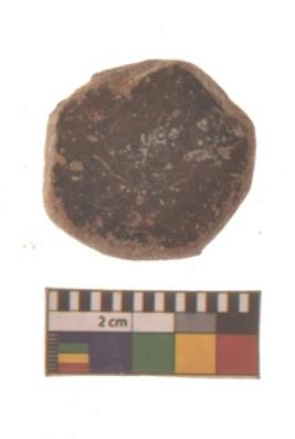 | Description / विवरण | Specimen of ground disc hopscotch made from a red ware. It has jagged edges with sign of chipping. It is rounded in shape. |