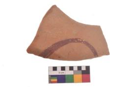 | Description / विवरण | Specimen of red on red ware with black decorative Semi circle geometric painting. |