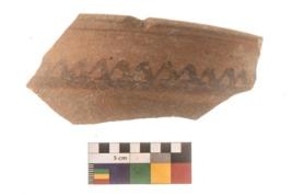 | Description / विवरण | Specimen of a Potsherd with black decorative geometric painting on it.It is set of two zigzag bands. |