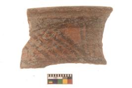 | Description / विवरण | Specimen of Potsherd with black decorative linear painting . |
