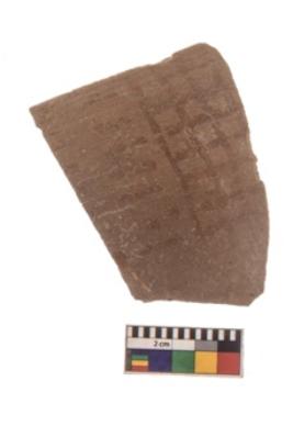 | Description / विवरण | Specimen of black on red ware with black decorative Lattice design geometric painting. |