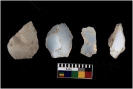| Description / विवरण | There are n 4 flakes tool; there are multidirectional irregular scar pattern on them; made of short flakes and all four have tapering edges. |