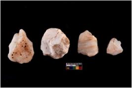 | Description / विवरण | Four utilised worked cores with sharp edges. Flakes have been removed from few sides. |