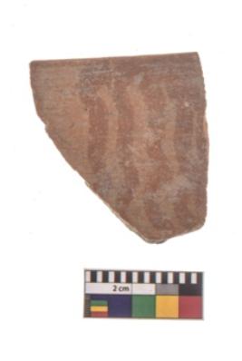 | Description / विवरण | Specimen of black on red ware with black decorative Vertical wavy lines geometric painting. |