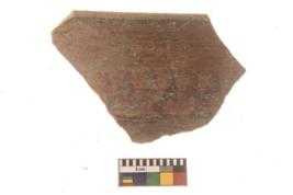 | Description / विवरण | Specimen of a Potsherd with black decorative geometric painting on it.It is set of two zigzag bands. |