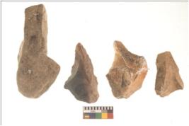 | Description / विवरण | There are n 4 flakes tool; there are large flakes with sides trimmed, Marks of secondary flaking are present on the both the faces. One is pointed functional top. |