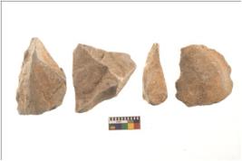 | Description / विवरण | There are n 4 flakes tool; there are large flakes with sides trimmed, Marks of secondary flaking are present on the both the faces. One is pointed functional top. |