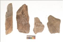 | Description / विवरण | There are n 4 flakes tool; there are large flakes with sides trimmed, Marks of secondary flaking are present on the both the faces. |