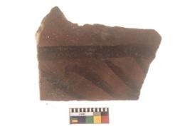 | Description / विवरण | Specimen of Potsherd with black decorative linear painting . |