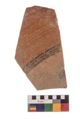 | Description / विवरण | Specimen of black on red ware with black decorative Horizontal lines geometric painting. |