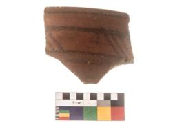 | Description / विवरण | Specimen of Potsherd with black decorative linear painting . |