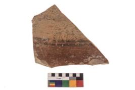 | Description / विवरण | Specimen of black on red ware with black decorative Horizontal lines geometric painting. |