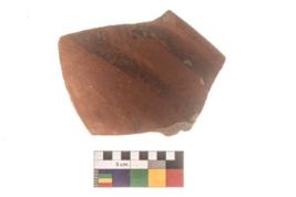 | Description / विवरण | Specimen of Potsherd black on red painted pottery. It is fine fabric in sharp contrast with painted design are executed in black pigment. |
