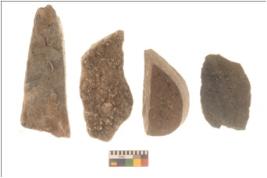 | Description / विवरण | There are n 4 flakes tool; there are large flakes with sides trimmed, Marks of secondary flaking are present on the both the faces. The dorsal is relatively flat. |