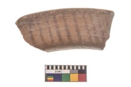 | Description / विवरण | Specimen of black on red ware with black decorative Vertical lines geometric painting. |