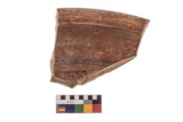 | Description / विवरण | Specimen of black on red ware with black decorative Horizontal lines geometric painting. |