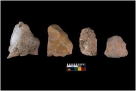 | Description / विवरण | There are n 4 flakes tool; there are multidirectional irregular scar pattern on them; made of short flakes and all four have tapering edges. |