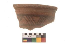 | Description / विवरण | Specimen of Potsherd with black decorative linear painting . |