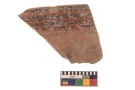 | Description / विवरण | Specimen of black on red ware with black decorative Horizontal lines geometric painting. |