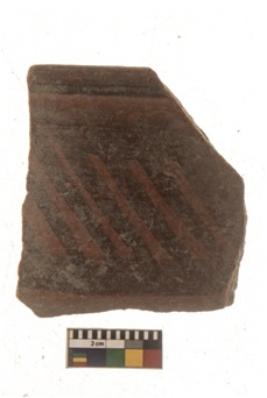 | Description / विवरण | Specimen of Potsherd with black decorative linear painting . |
