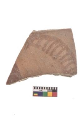 | Description / विवरण | Specimen of red on red ware with black decorative Semincircle with diagonal projections geometric painting. |