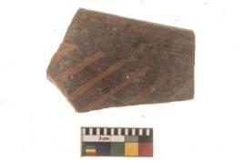 | Description / विवरण | Specimen of Potsherd with black decorative linear painting . |