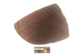 | Description / विवरण | Specimen of Potsherd black on red painted pottery. It is fine fabric in sharp contrast with painted design are executed in black pigment. |