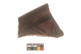 | Description / विवरण | Specimen of Potsherd with black decorative linear painting . |