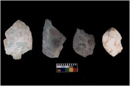 | Description / विवरण | There are n 4 flakes tool; there are large flakes with sides trimmed, Marks of secondary flaking are present on the both the faces. The dorsal is relatively flat. |