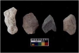 | Description / विवरण | There are n 4 flakes tool; there are multidirectional irregular scar pattern on them; made of short flakes and all four have tapering edges. |