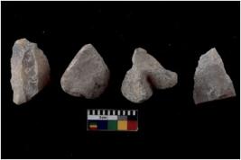 | Description / विवरण | There are n 4 flakes tool; there are large flakes with sides trimmed, Marks of secondary flaking are present on the both the faces.The dorsal is relatively flat. |