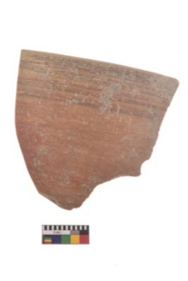 | Description / विवरण | Specimen of black on red ware with black decorative Horizontal lines geometric painting. |