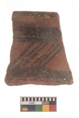 | Description / विवरण | Specimen of black on red ware with black decorative Parallel diagonal lines geometric painting. |