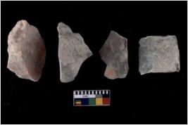 | Description / विवरण | There are n 4 flakes tool; there are multidirectional irregular scar pattern on them; made of short flakes and all four have tapering edges. |