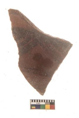 | Description / विवरण | Specimen of Potsherd black on red painted pottery. It is fine fabric in sharp contrast with painted design are executed in black pigment. |