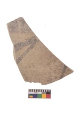 | Description / विवरण | Specimen of black on red ware with black decorative Triangle motif geometric painting. |