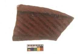 | Description / विवरण | Specimen of Potsherd with black decorative linear painting . |