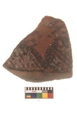 | Description / विवरण | Specimen of Potsherd black on red painted pottery. It is fine fabric in sharp contrast with painted design are executed in black pigment. |