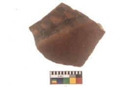 | Description / विवरण | Specimen of Potsherd black on red painted pottery. It is fine fabric in sharp contrast with painted design are executed in black pigment. |
