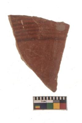 | Description / विवरण | Specimen of black on red ware with black decorative Horizontal lines geometric and nature painting. |