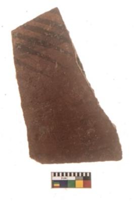 | Description / विवरण | Specimen of Potsherd with black decorative linear painting . |