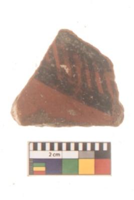 | Description / विवरण | Specimen of Potsherd black on red painted pottery. It is fine fabric in sharp contrast with painted design are executed in black pigment. |