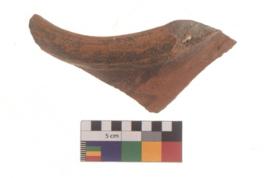 | Description / विवरण | Specimen of black on red ware with black decorative Small vertical projections on the rim geometric painting. |