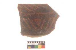 | Description / विवरण | Specimen of Potsherd black on red painted pottery. It is fine fabric in sharp contrast with painted design are executed in black pigment. |