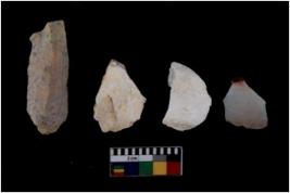 | Description / विवरण | There are n 4 flakes tool; there are flakes tool with prominent flaking marks. It made up of a large flakes with sides trimmed. It is rectangular in shaped. |