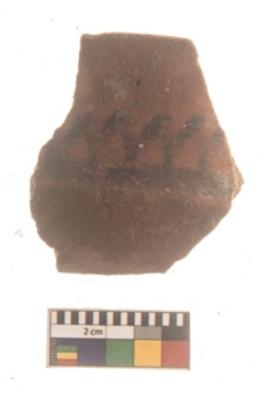| Description / विवरण | Specimen of a Potsherd with black decorative geometric painting on it.It is set of two zigzag bands. |
